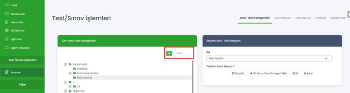- Admin & Eğitmen – Sınavlar – Soru-Test Kategorileri sayfası yeni görünüme göre düzenlendi.