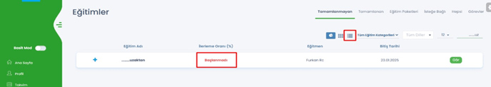 - Kullanıcı – Eğitimler – Liste görünümde başla metni, Başlanmadı olarak değiştirildi.