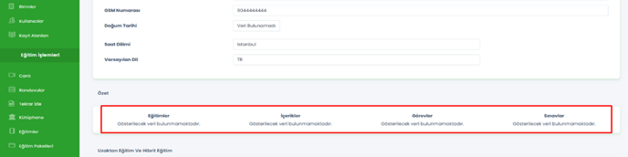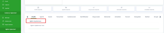 - Eğitimler – Profil sayfasında bulunan ders tanımı metni, Eğitim açıklaması olarak değiştirildi.