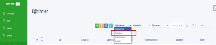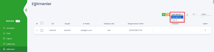 - Birim Yöneticisi – Eğitmenler sayfasında, toplu sil butonu toplu işlemler menüsü altında toplandı.