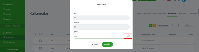 - Tüm roller – Şifre değiştir sayfasına şifreyi göster ikonu eklendi.