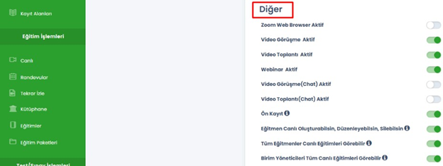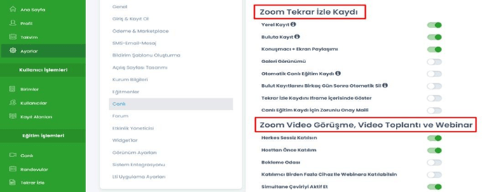 - Admin – Ayarlar – Canlı sayfasında, canlı tipleri ayarlarına göre düzenlendi.