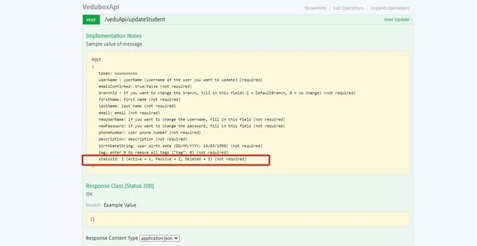 - Swagger/Api – updateStudent apisine statusId