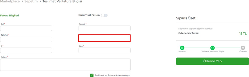Bu ayar kapalı olduğunda ödeme adımında ID / TC girişi alanı görünmeyecek.