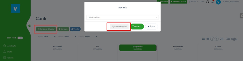 - Admin – Randevular – Ayarlar sayfasında, oluşturma yöntemi Eğitimler
