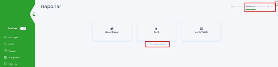 - Admin & Eğitmen – Raporlar – Kullanıcı Bazlı raporu sayfasına daha fazla göster butonu eklendi.