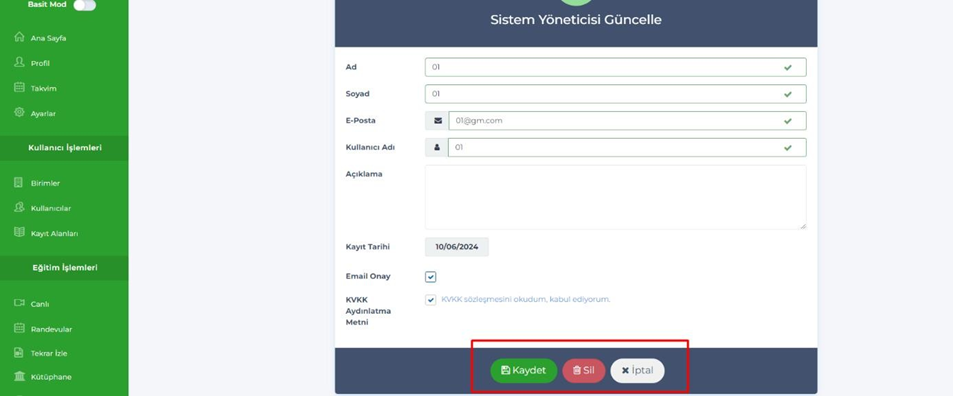 - Birim yöneticisi – Pasif eğitmene güncelle dediğimizde hata geliyordu, düzeltildi.