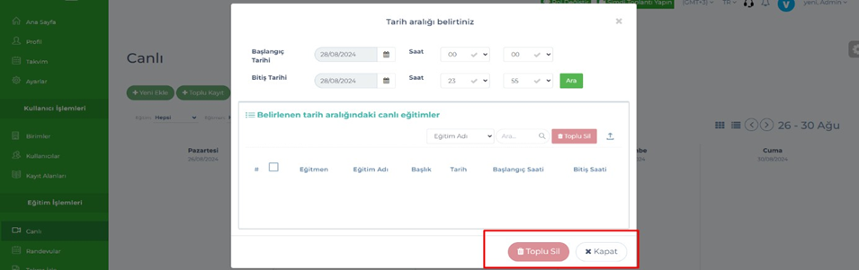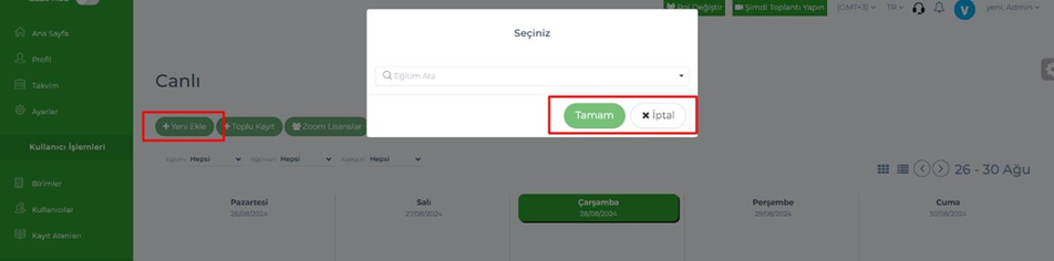 - Admin & Eğitmen & Birim Yöneticisi & Kullanıcı – Canlı – Ekle & Sorgula, sayfalarında ki butonlar yeni tasarıma göre düzenlendi.