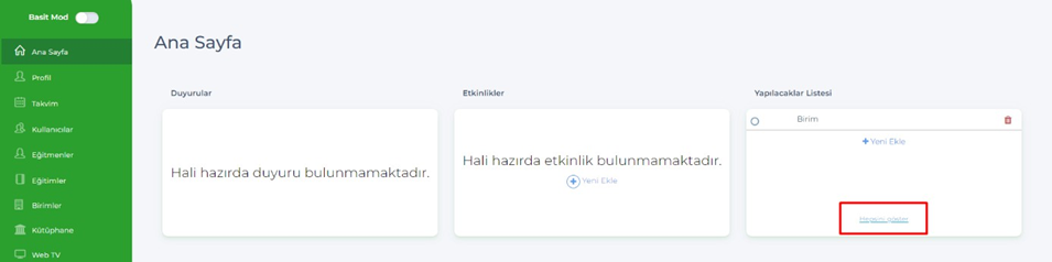 - Birim Yöneticisinde yapılacaklar listesinde tek veri varsa hepsini göster butonu görünmüyordu, düzeltildi.