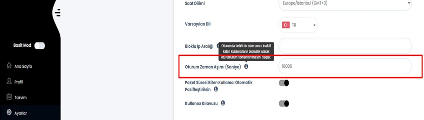 Şimdilik oturum zaman aşımı ayarı sistemden kaldırıldı.