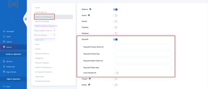 Kullanıcılar eğitim satın almak istediğinde, ödeme Paywall üzerinden yönlendirilir.