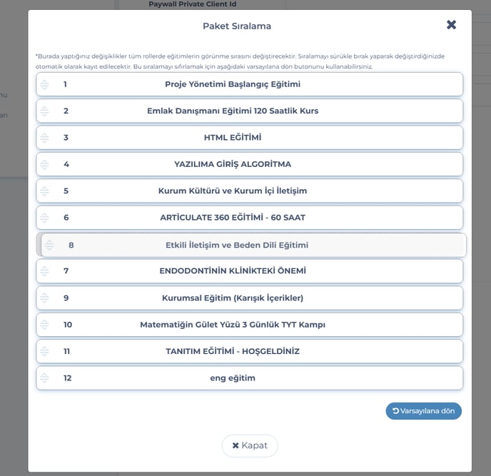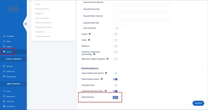 2 - Admin - Ödeme & Marketplace sayfasına paket sıralama özelliği eklendi.