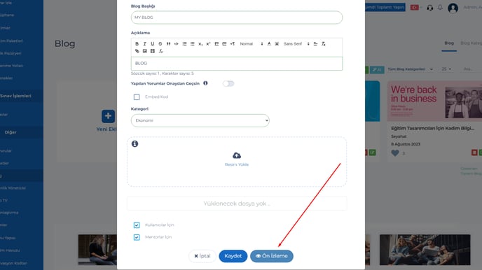 4- Eğitim paket dönemi detayları ve Blog sayfasına ön izleme ayarı eklendi.