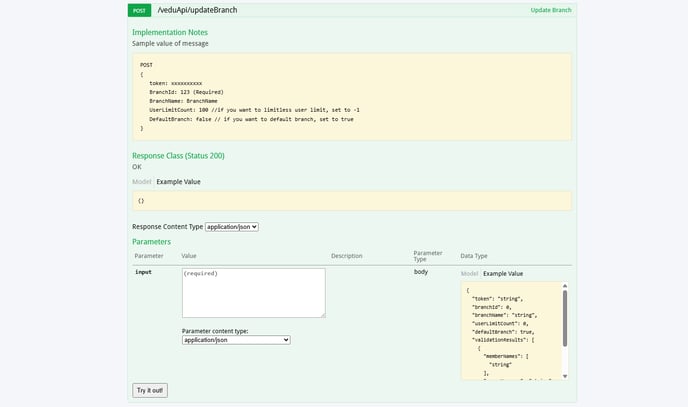 6- Pages/api sayfasına, updateBranch apisi eklendi.