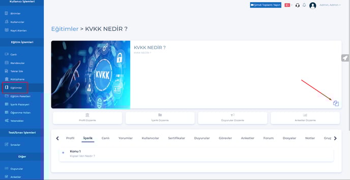7- Admin & Eğitmen – Eğitimler sayfasına, Eğitim linkini kopyala ayarı eklendi.