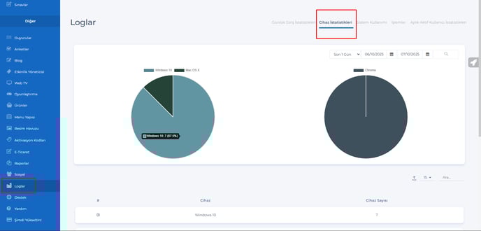 12- Loglar - Cihaz istatistikleri sayfasına yüzde bilgisi eklendi.