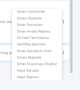 3- Sınav – Üç nokta menüsündeki metinler anlaşılır şekilde güncellendi.