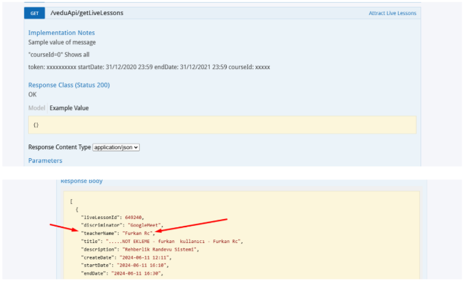 4- Pages/api – getLiveLessons apisine, Eğitmen adı bilgisi eklendi.