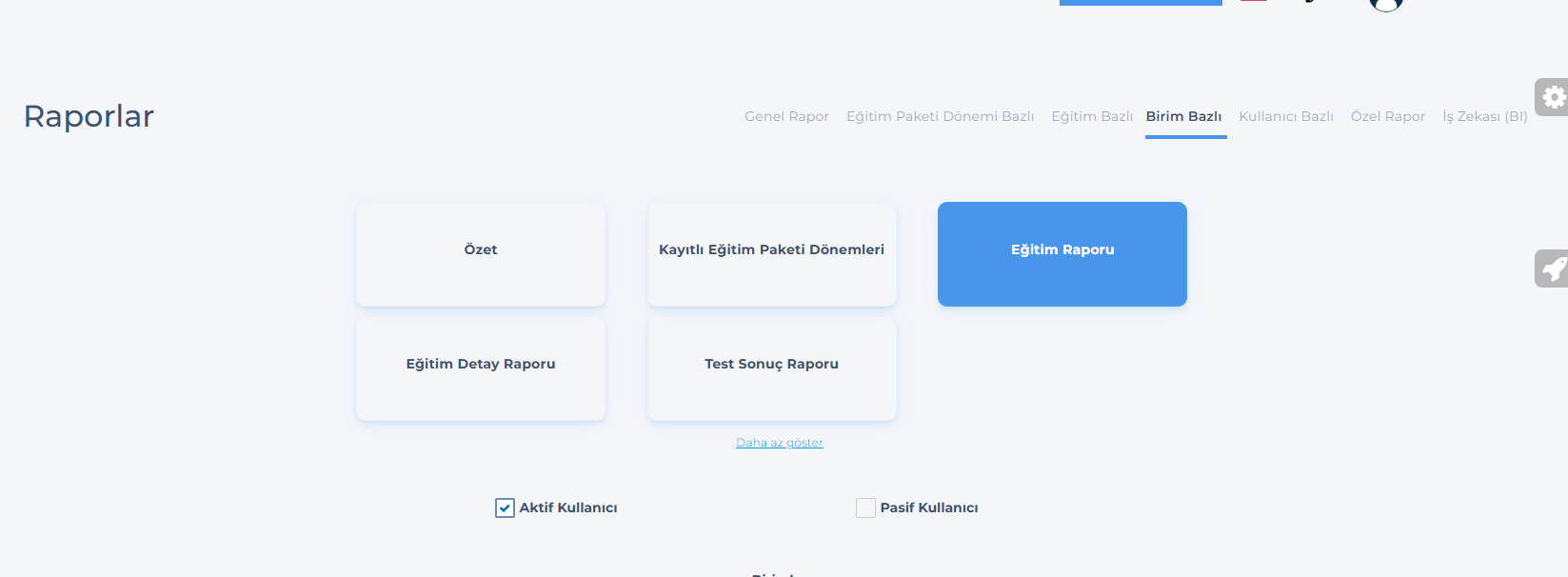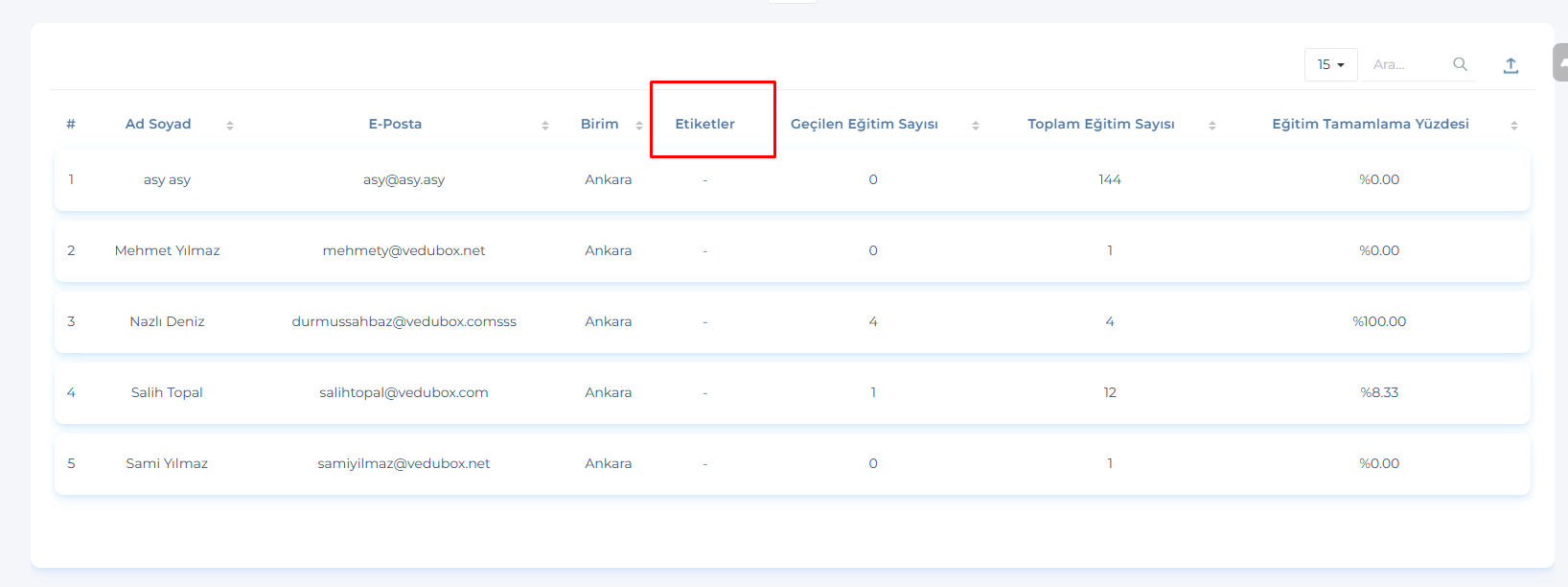 5- Birim bazlı – Eğitim raporuna, Etiketler sütunu eklendi.