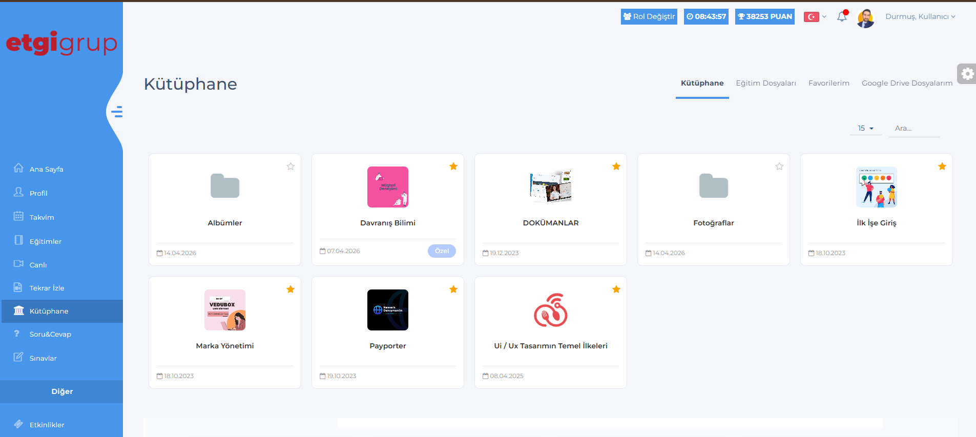11- Kullanıcı – Kütüphane sayfasında yeni tasarıma geçildi.
