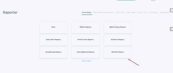 2- Admin – Raporlar – Genel Rapor sayfasına, Etkinlik Raporu ayarı eklendi.