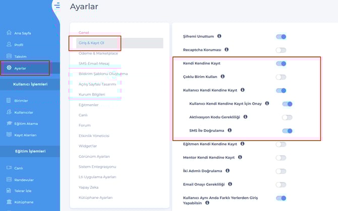 Kendi kendine kayıt olan kullanıcılardan kayıt sırasında SMS doğrulaması istenecek.