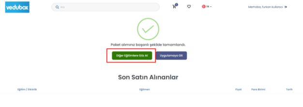 Diğer Eğitimlere Göz At butonu eklendi. Marketplace eğitimler sayfasına yönlenecek.