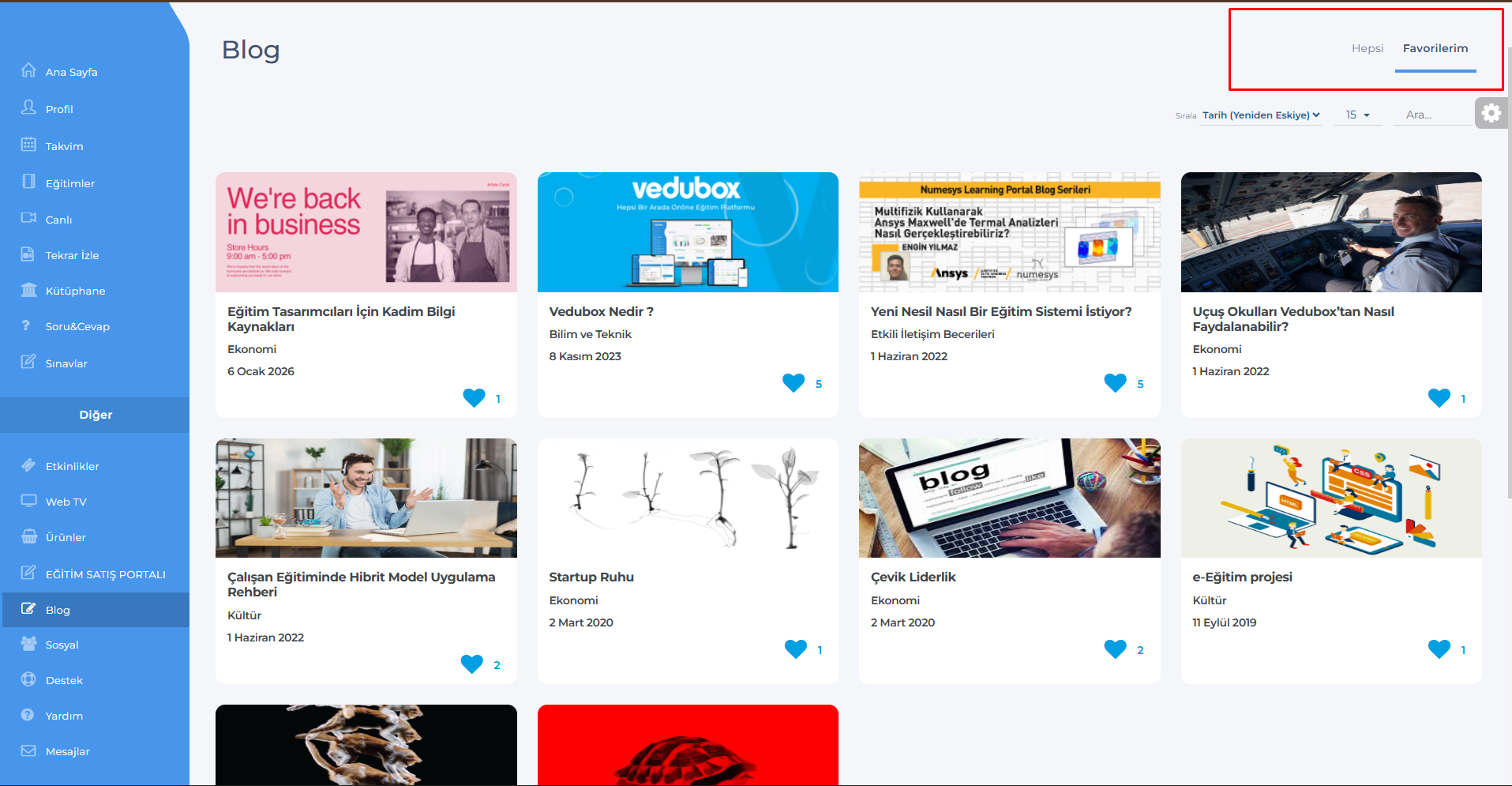 8- Kullanıcı – Blog – Favorilerim sayfasında, tarih seçme alanı kaldırıldı.
