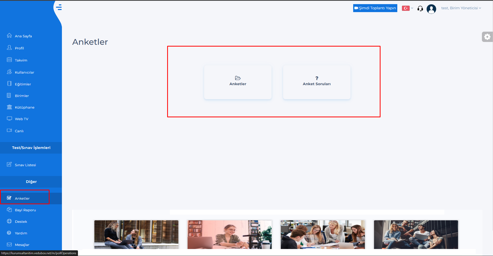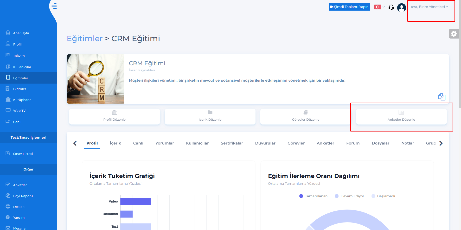 Aynı şekilde Eğitimler sayfasına, Anketler Düzenle tabı eklendi.