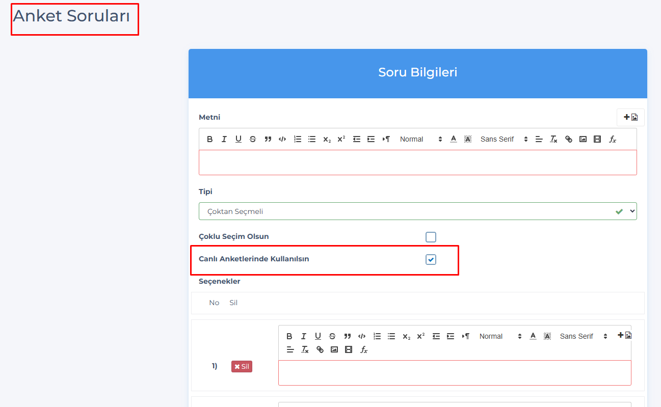11- Anket soruları – Çoktan seçmeli soru tipine, Canlı Anketlerinde kullanılsın ayarı