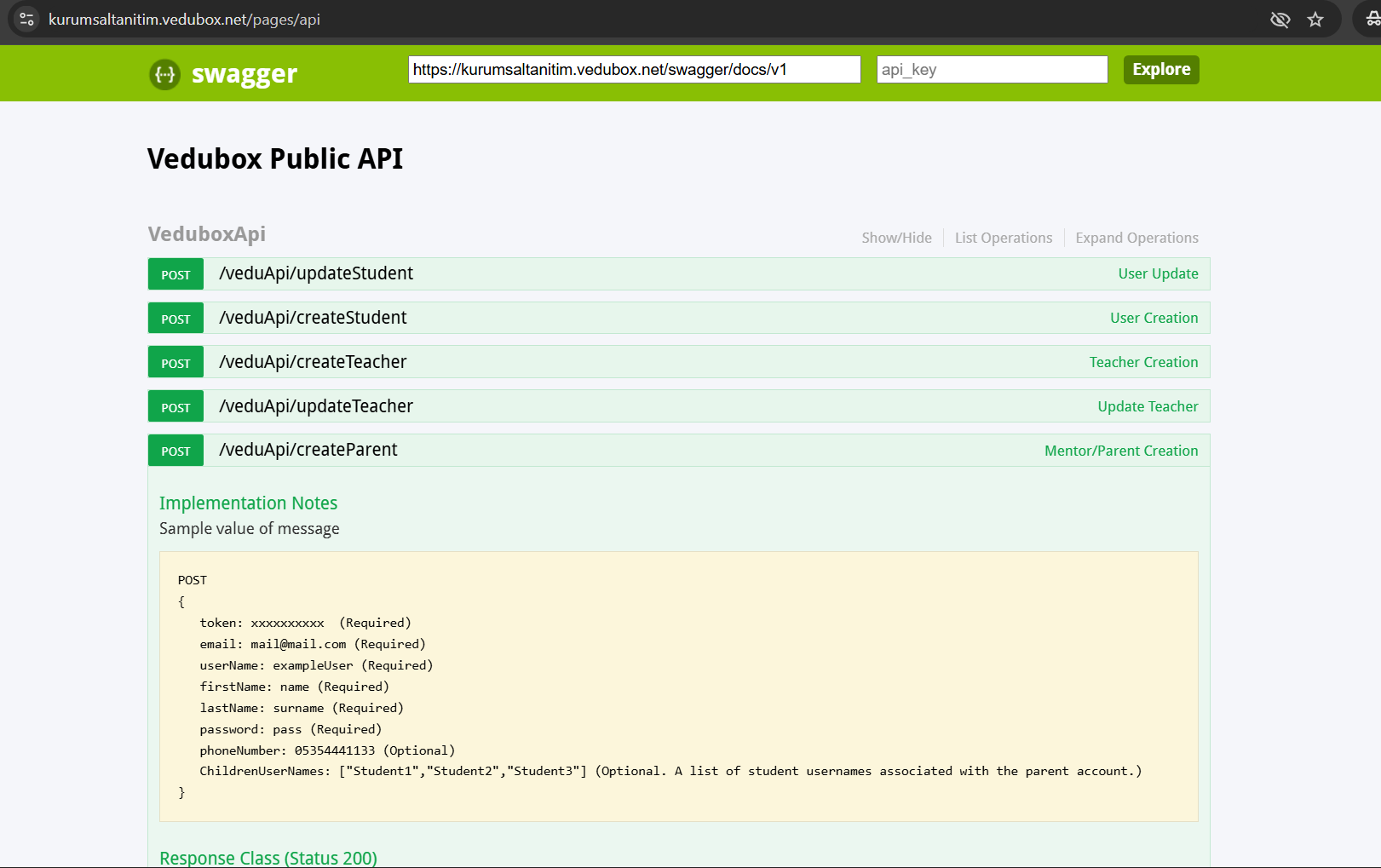 4- Sisteme eğitmen güncelleme API eklendi. Sistem url sonuna /pages/api yazarak ulaşılabilir