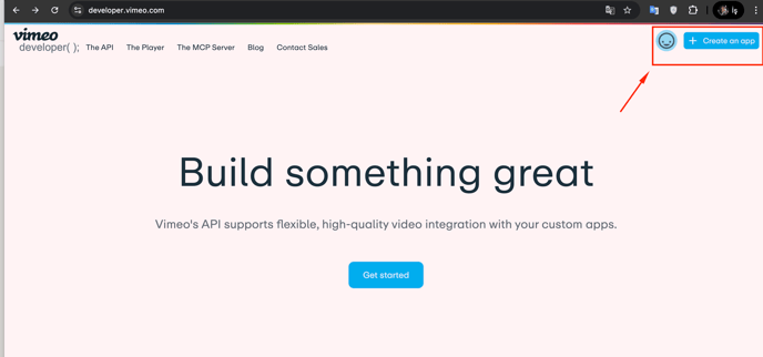 - Yeni bir sayafa https://developer.vimeo.com/ hesabına giriş yapın.