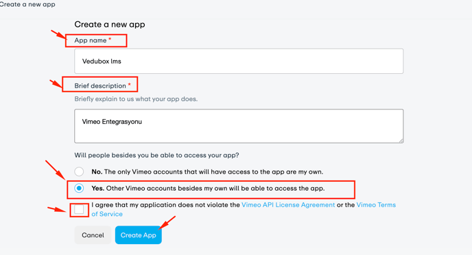 - App ismi ve kısa açıklama yazmanız gerekiyor, istediğiniz isim ve açıklamayı yazabilirisniz.