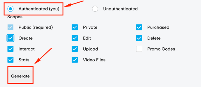 - Authenticated(you) seçeneğini işaretleyerek tüm seçenekleri işaretleyin ve Generate butonunu tıklayın.