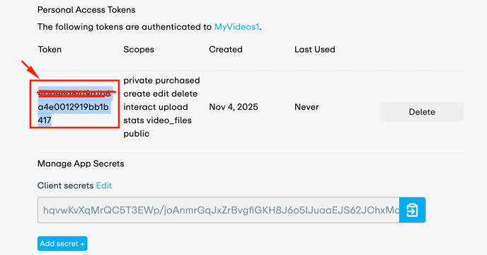 - Oluşturulan token'ı seçin ve tümünü kopyalayın
