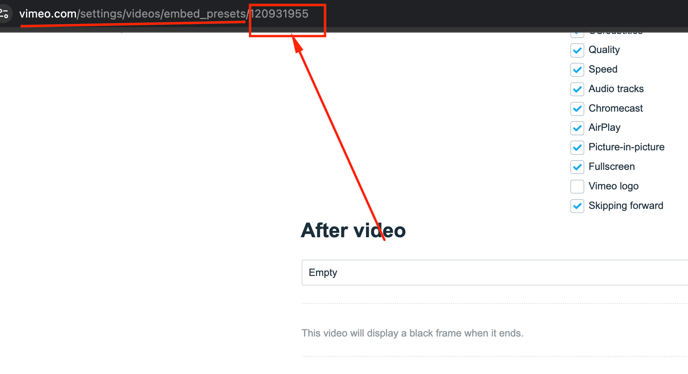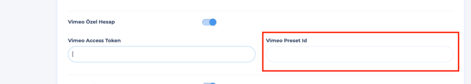 Url'den vimeo preset id'yi kopyalayın. Sadece numaraları kopyalayın bu alan preset id olarak tanımlanıyor.